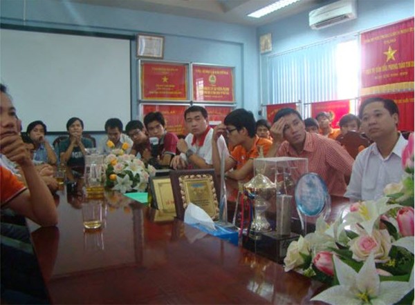 1 Đầu tiên  là phần trao đổi thông tin về các kỹ thuật làm robot tại phòng họp báo của LHU