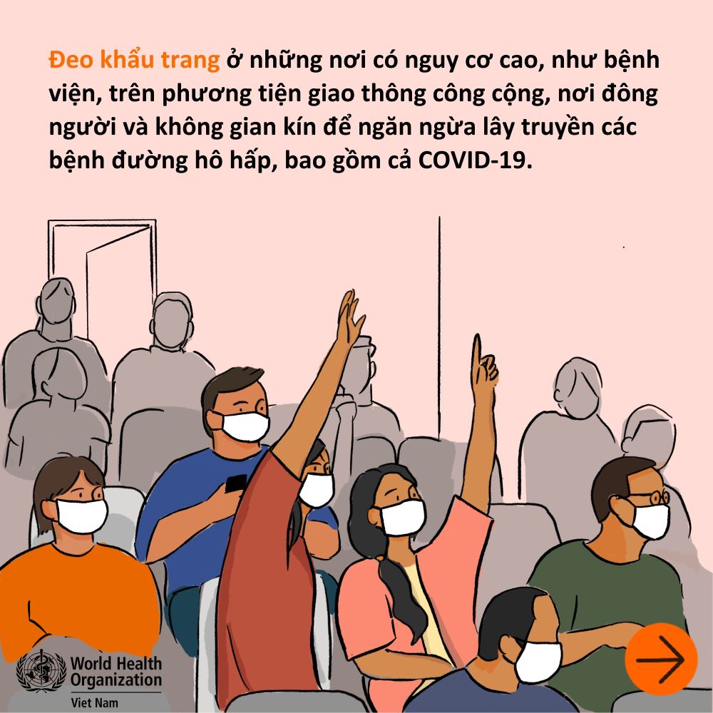 😷 Đeo khẩu trang ở những nơi có nguy cơ cao như bệnh viện, nơi có không gian kín và đông người, trên phương tiện giao thông công cộng để ngăn ngừa vi rút lây lan.