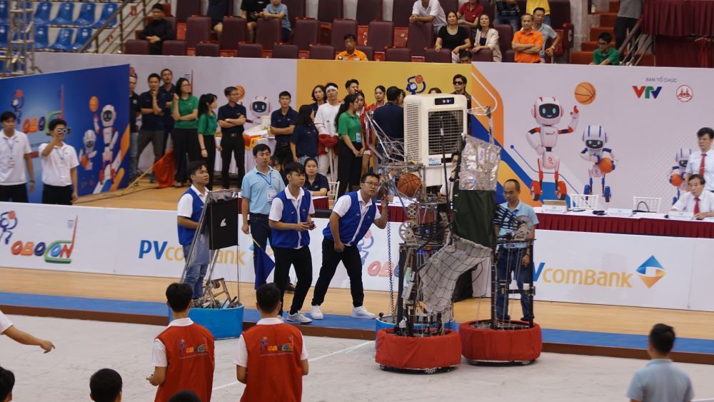 Throughout the competition rounds at the Ninh Binh Provincial Gymnasium, LHU's Robocon teams – LH-UDS, LH-WARRIORS, LH-TKCB, and LH-AS – demonstrated a dominant performance. Employing cool-headed strategies, seamless coordination, and resilience honed over multiple seasons, four out of five LHU teams advanced directly to the semi-finals. Notably, the LH-UDS team maintained an undefeated record throughout the entire season.