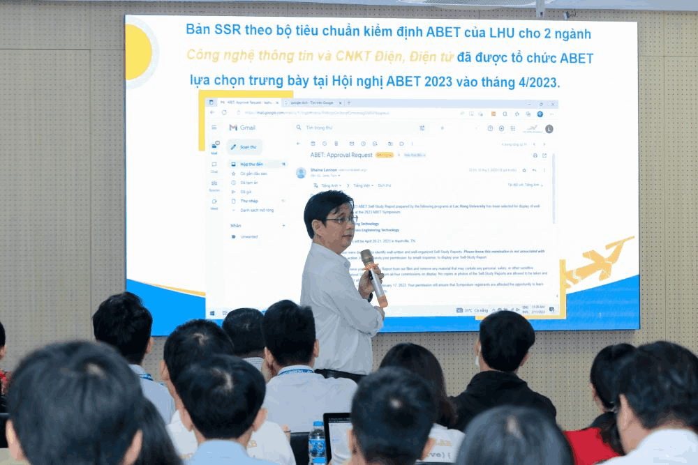Assoc. Prof. Dr. Nguyen Thanh Lam, Vice Rector, addressed the queries of faculty members and shared valuable insights on assessing program learning outcomes according to ABET and AUN-QA standards. His discussion included topics such as designing learning outcomes based on Bloom's taxonomy, creating detailed course syllabi aligned with the learning outcomes, and methods for evaluating the achievement of course learning outcomes. These insights provided faculty members with a comprehensive understanding of the methods for evaluating both course-specific and overall program learning outcomes.