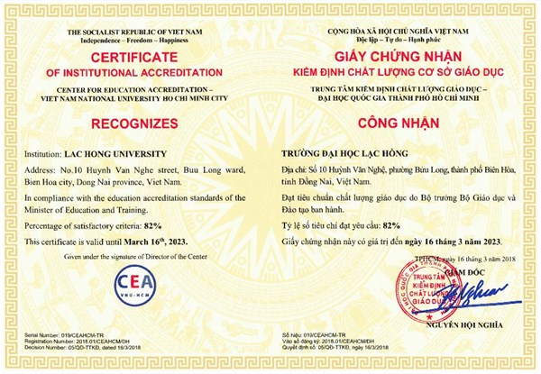 • Article 1: Lac Hong University is recognized as meeting educational quality standards and is awarded the institutional accreditation certificate.