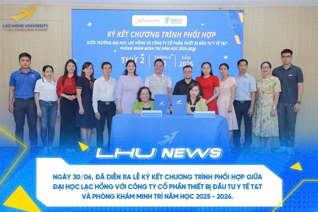 Ngày 30/6/2025, tại phòng B203, Trường Đại học Lạc Hồng, đã diễn ra lễ ký kết chương trình phối hợp giữa Trường Đại học Lạc Hồng và Công ty Cổ phần Thiết bị Đầu tư Y tế T&T cùng Phòng khám Minh Trí cho năm học 2025 – 2026. Đây là sự tiếp nối của biên bản ghi nhớ (MOU) đã ký kết cho năm học 2024 – 2025.