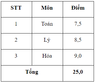Tổng kết điểm theo ba chỉ tiêu của thí sinh sẽ là: (3) = (4) = 13,5 + 10,8 = 24,3