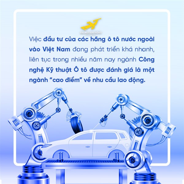 Với đặc thù ngành kỹ thuật, công nghệ kỹ thuật ô tô là một ngành học đòi hỏi cả kiến thức lẫn kỹ năng. Với lý do này, việc lựa chọn một môi trường đào tạo uy tín với hệ thống trang thiết bị hiện đại, chú trọng thời lượng thực hành là điều tối quan trọng. Trong đó, ở khu vực phía Nam, Đại học Lạc Hồng là một cơ sở đào tạo uy tín, được nhiều bạn sinh viên quan tâm, tin tưởng lựa chọn.