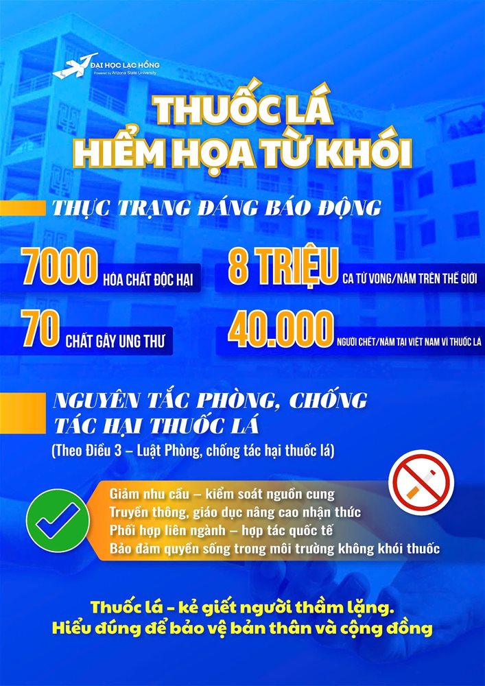 In alignment with Circular No. 11/2023/TT-BYT issued by the Ministry of Health on May 11, 2023, Lac Hong University strictly enforces a Smoke-Free Policy.