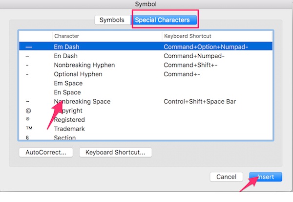 Để sử dụng thêm các ký hiệu đặc biệt khác chọn “Special Characters”, tương tự chọn ký tự -> Insert